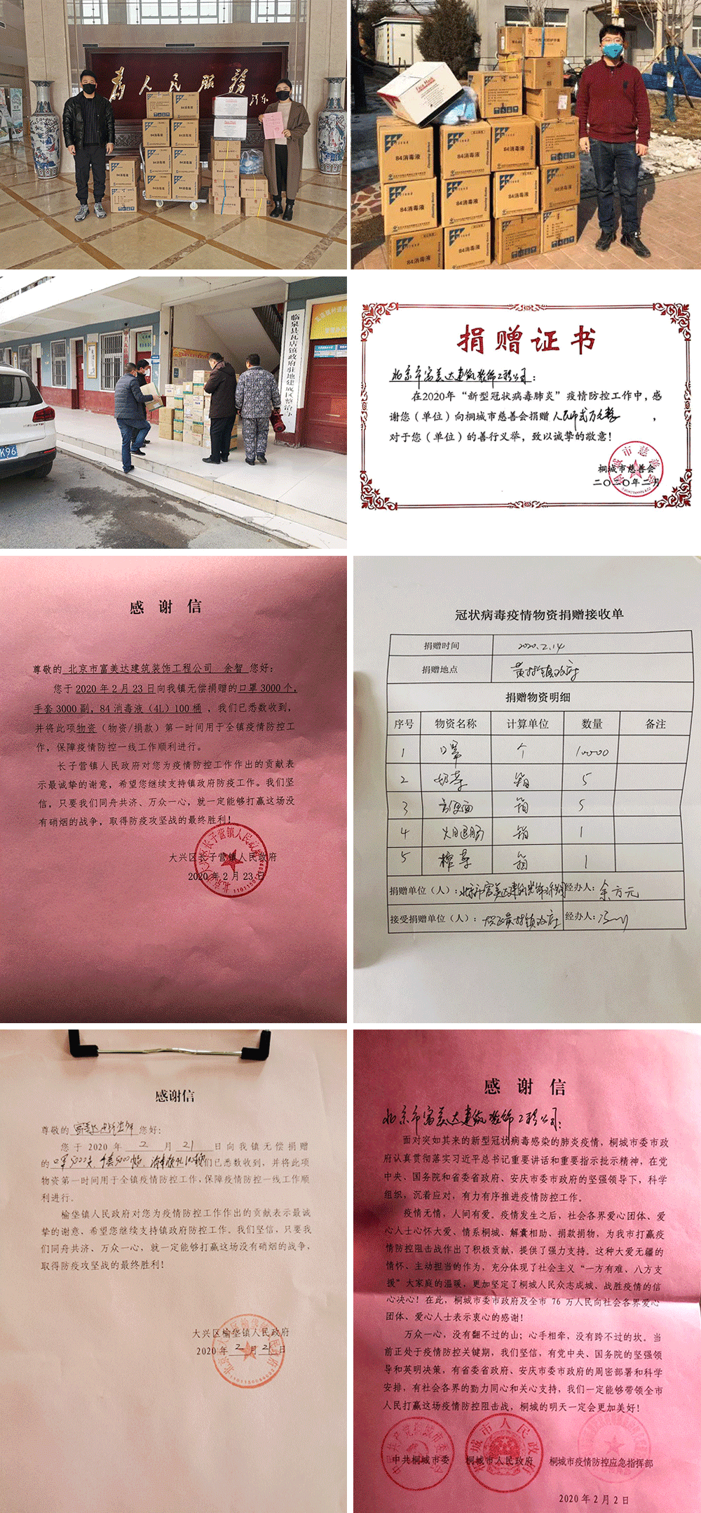 在捐贈(zèng)儀式上,大興區(qū)各鎮(zhèn)街對(duì)富美達(dá)公司頒發(fā)了捐贈(zèng)證書和感謝信,對(duì)富美達(dá)抗擊疫情做出的貢獻(xiàn)表示由衷的感謝,感激區(qū)內(nèi)企業(yè)對(duì)整個(gè)疫情和各鎮(zhèn)街的關(guān)心。用實(shí)際行動(dòng)闡釋了“一方有難,八方支援”的大愛精神。